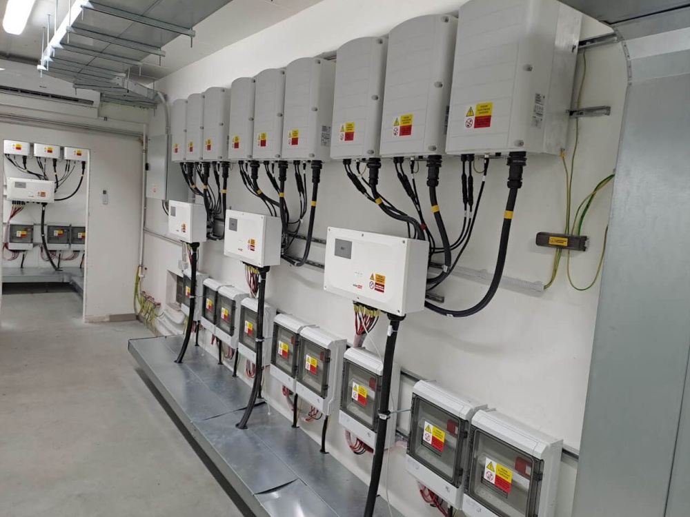 Instalace nové FVE o celkovém instalovaném výkonu 987,8 kWp. Fotovoltaická soustava (FVS) se skládá z 2171 ks monokrystalických fotovoltaických panelů s jmenovitým výkonem 455 Wp, 8 ks FV střídačů s jmenovitým výkonem 100 kW, DC a AC rozvaděčů. Výkon z FVS je vyveden do stávající elektroinstalace objektu. Celá technologie FVS je umístěná v rozvodně NN.