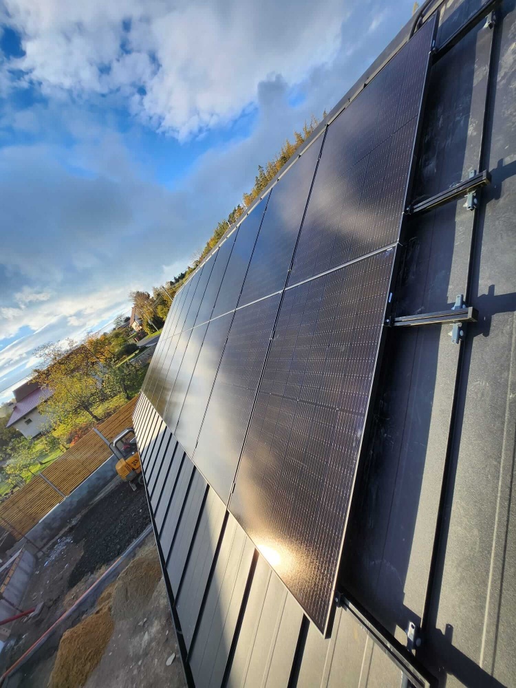 Jednoduchá, standardní instalace FVE na šikmou střechu na falc s orientací na jih.