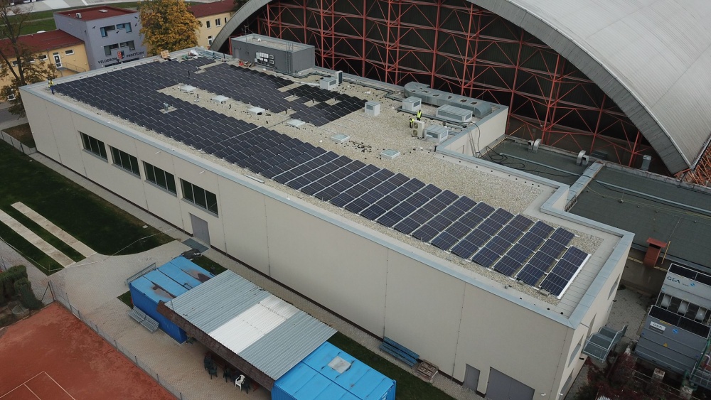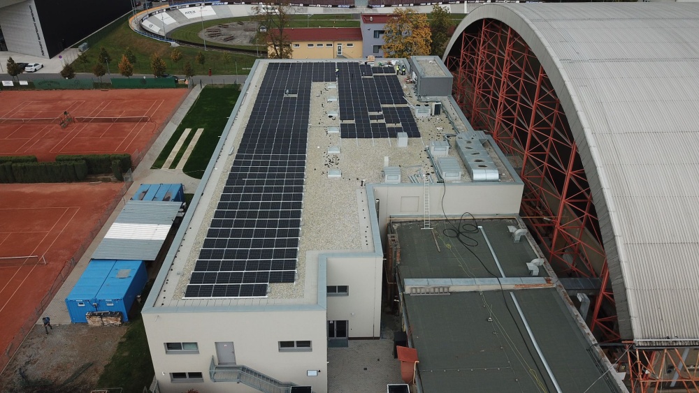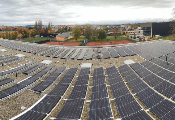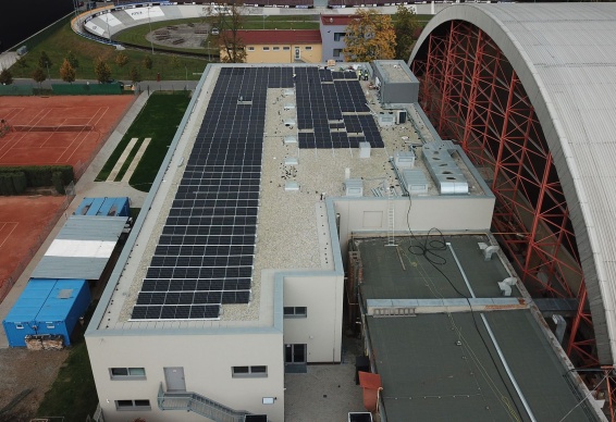 • Instalace fotovoltaického systému o celkovém instalovaném výkonu 131,1 kWp se skládá z 276 ks monokrystalických fotovoltaických panelů, každý o jmenovitém výkonu 475 Wp. FV panely jsou vybaveny výkonovými optimizéry typu SolarEdge S500. Jsou instalovány 2 ks třífázových střídačů se synergickou technologií SolarEdge SE66,6K.
