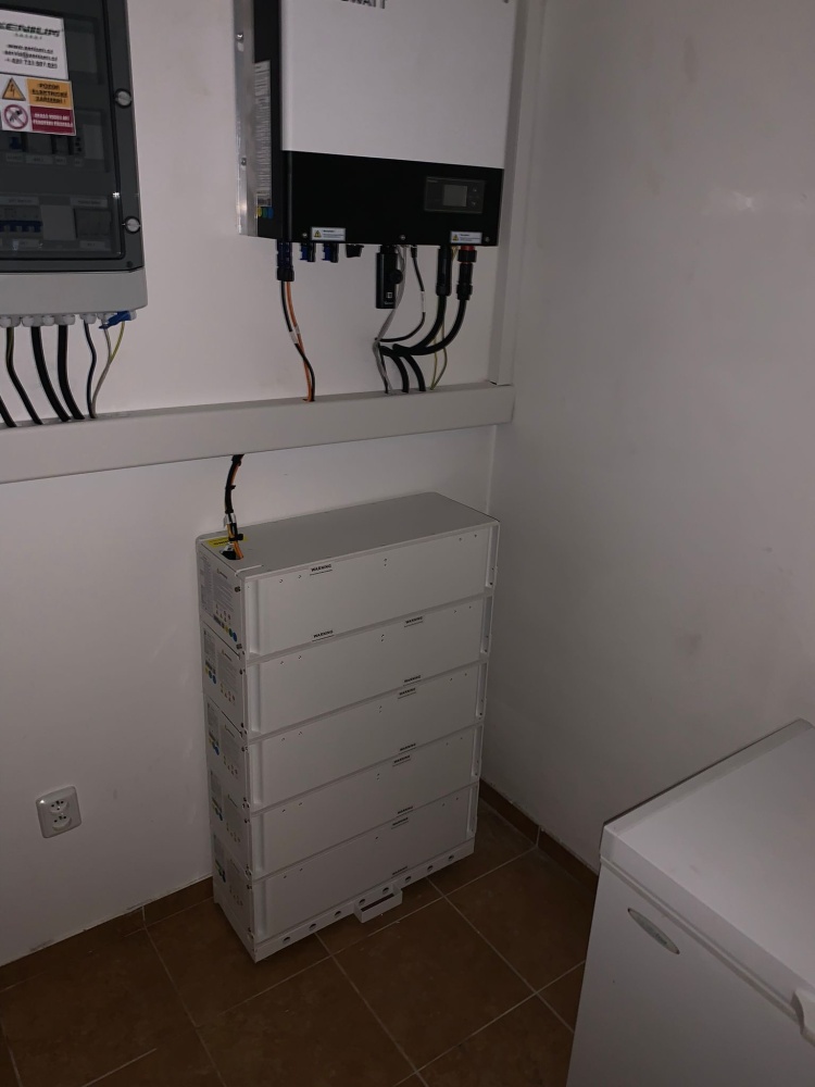• Výkon FVE 8,19 kWp, baterie 10,24 kWh, střídač GROWATT SPH10000TL3, FV panely -18 ks Ja SOLAR 455 Wp, optimizéry TIGO, Growatt Groboost – přetoky do vody