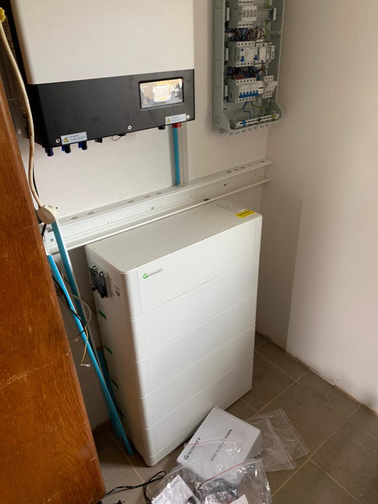 • Výkon FVE 8,19 kWp, baterie 10,24 kWh, střídač GROWATT SPH10000TL3, FV panely -18 ks Ja SOLAR 455 Wp, Growatt Groboost – přetoky do vody