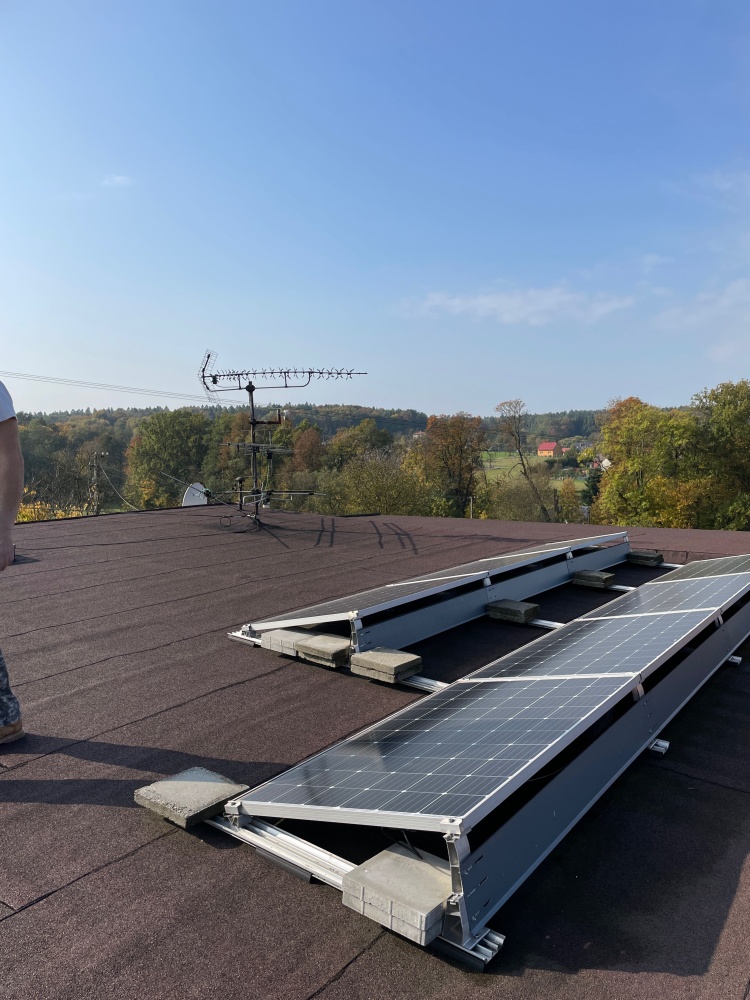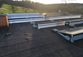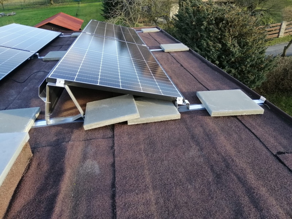• Podle přání zákazníka na maximální výkon FVE byla provedena montáž FV panelů na 2 samostatné střechy (RD a garáž) – propojení stringů a umístění technologie bylo realizováno v RD