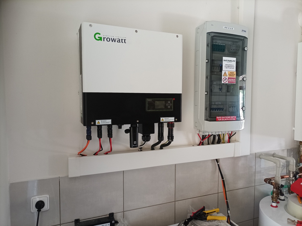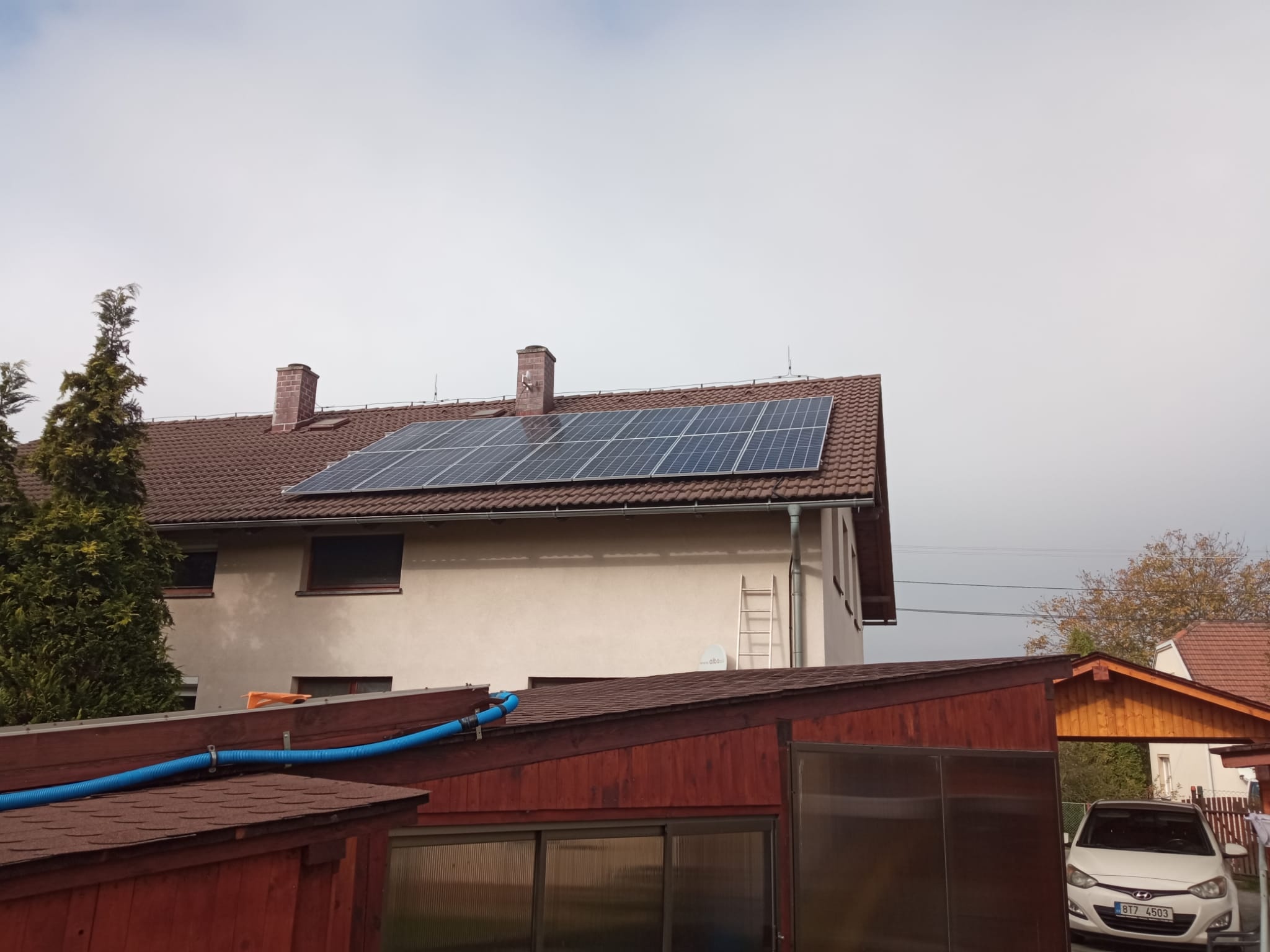 Výkon FVE 8,14kWp, baterie 10,24kWh, střídač GROWATT SPH8000TL3, FV panely - 22ks Ja SOLAR 370Wp, optimizéry TIGO, autonabíječka THOR 22AS-P