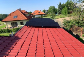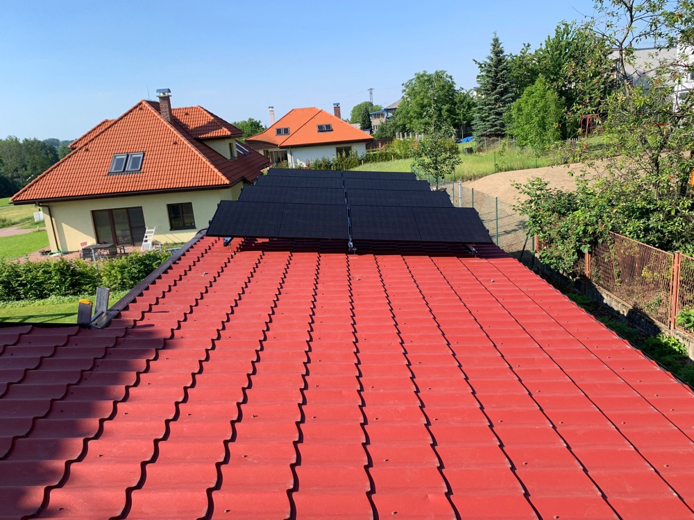 Členitá střecha s instalací na dva různé typy krytin s orientací na dvě světové strany (východ a Jih) celo černé provedení.