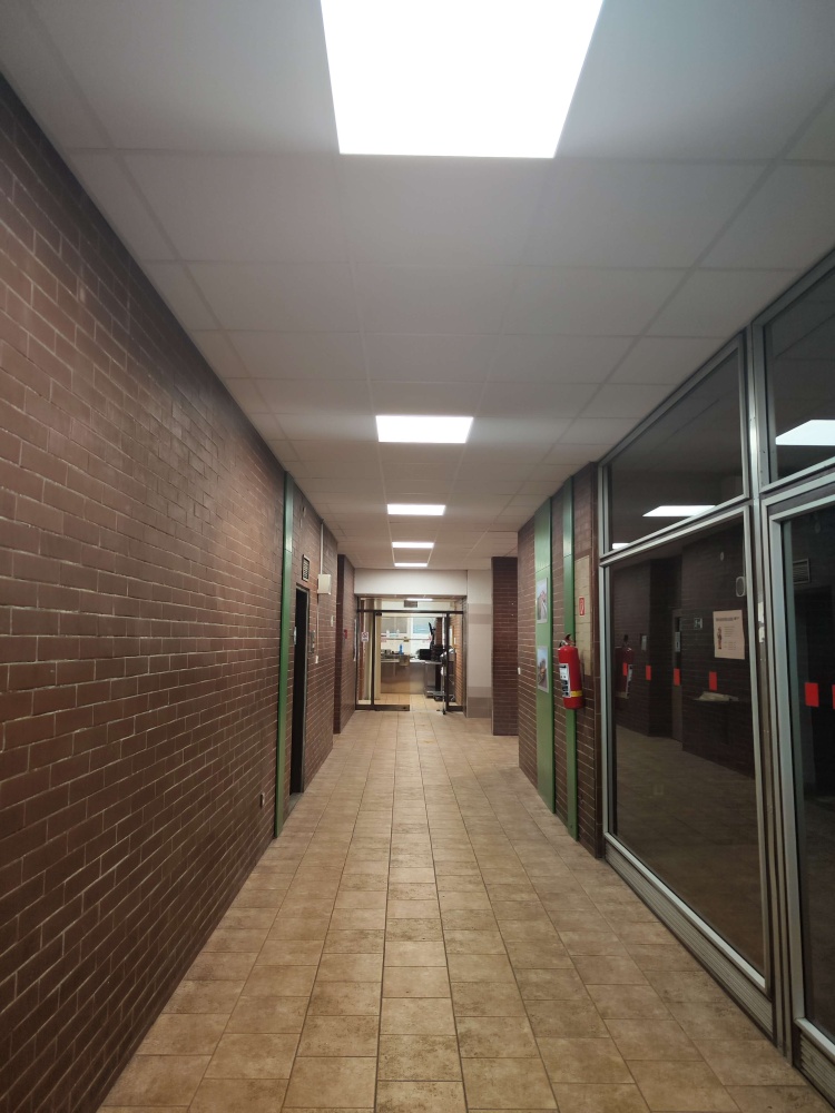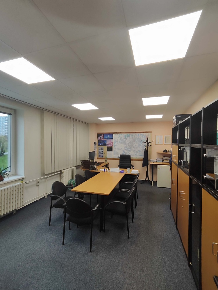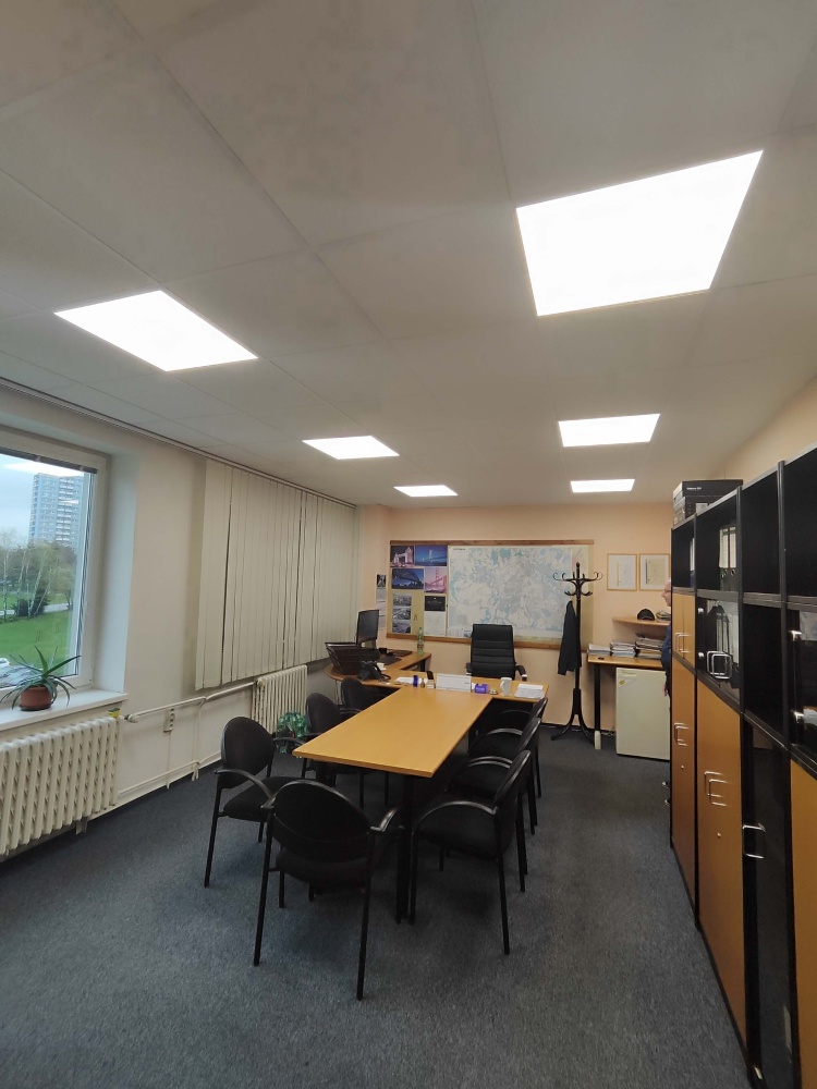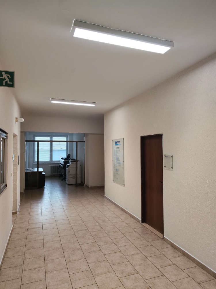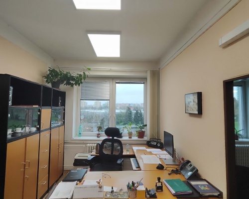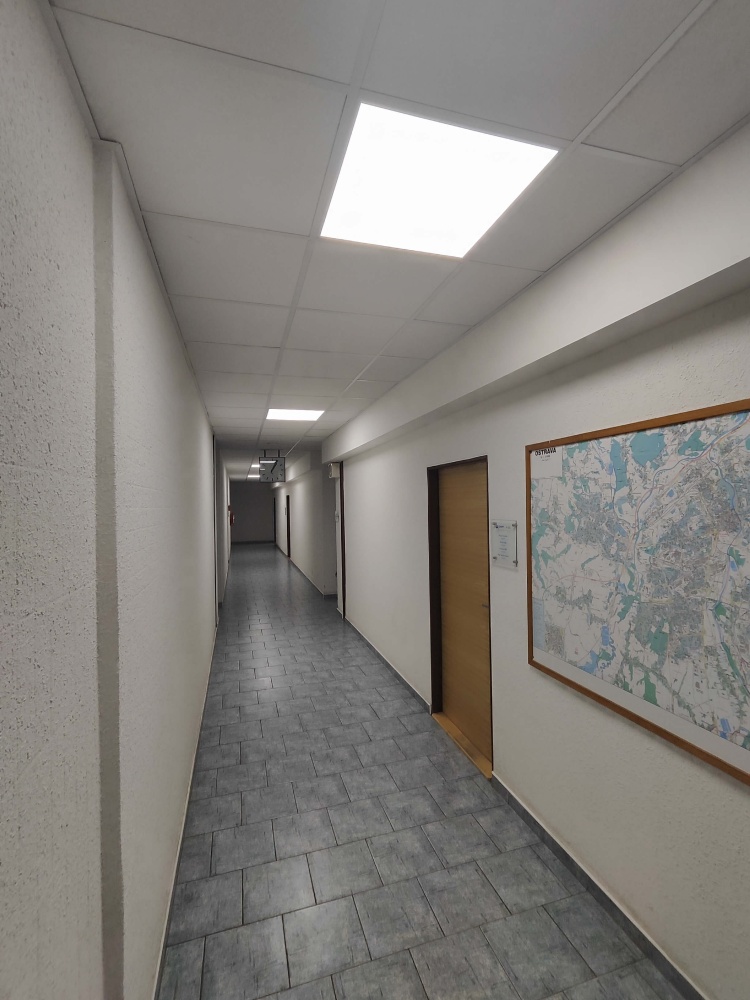 • Zadáním investora bylo výměny starého osvětlení za nové moderní úsporné led osvětlení, které zvýší zrakovou pohodu jednotlivých pracovišt v administrativní budově.