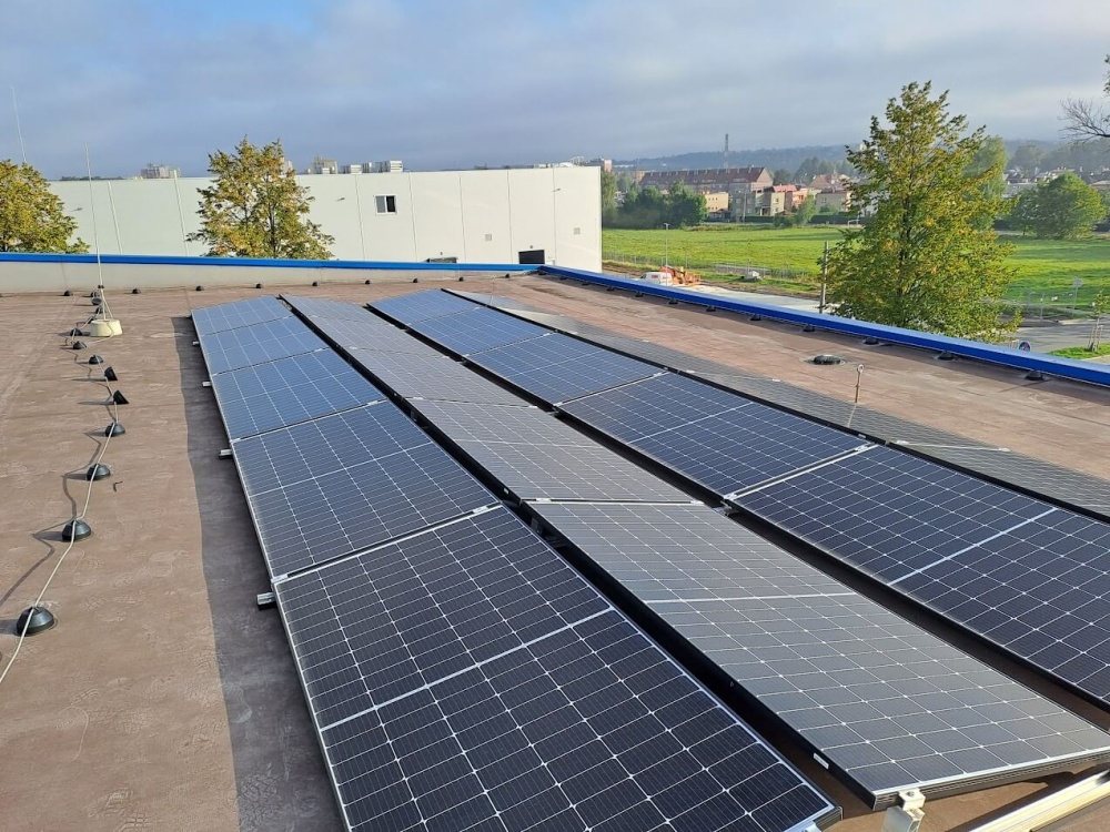 Instalace nové FVE o celkovém instalovaném výkonu 987,8 kWp. Fotovoltaická soustava (FVS) se skládá z 2171 ks monokrystalických fotovoltaických panelů s jmenovitým výkonem 455 Wp, 8 ks FV střídačů s jmenovitým výkonem 100 kW, DC a AC rozvaděčů. Výkon z FVS je vyveden do stávající elektroinstalace objektu. Celá technologie FVS je umístěná v rozvodně NN.