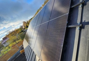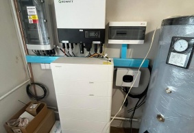 Výkon FVE 6,66kWp, baterie 12,80 kWh, střídač GROWATT SPH8000TL3, FV panely - 18ks Ja SOLAR 370Wp, auto-nabíječka THOR 22AS-P 11kW, Groboost – přetoky z FVE do vody.