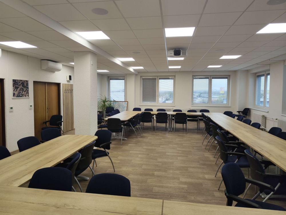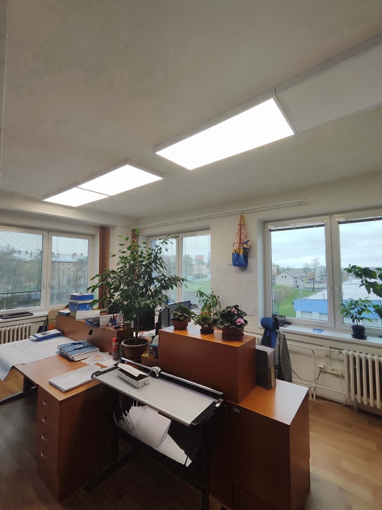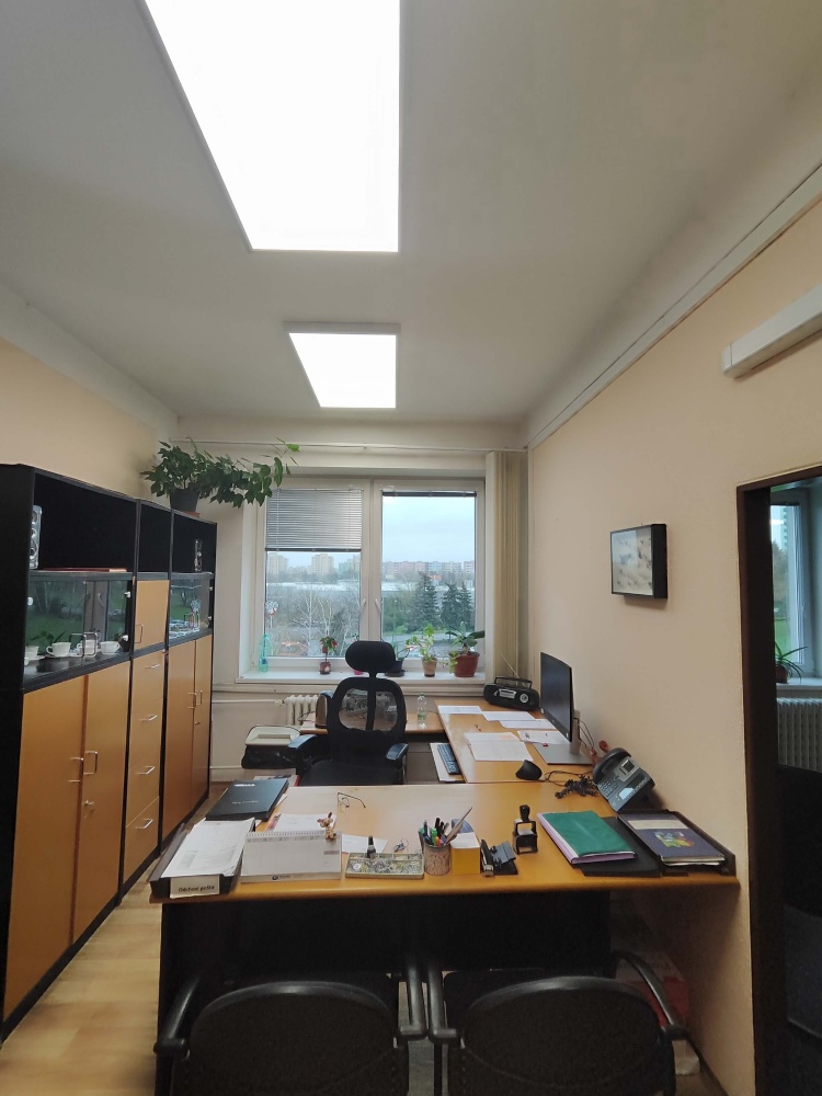 • Zadáním investora bylo výměny starého osvětlení za nové moderní úsporné led osvětlení, které zvýší zrakovou pohodu jednotlivých pracovišt v administrativní budově.