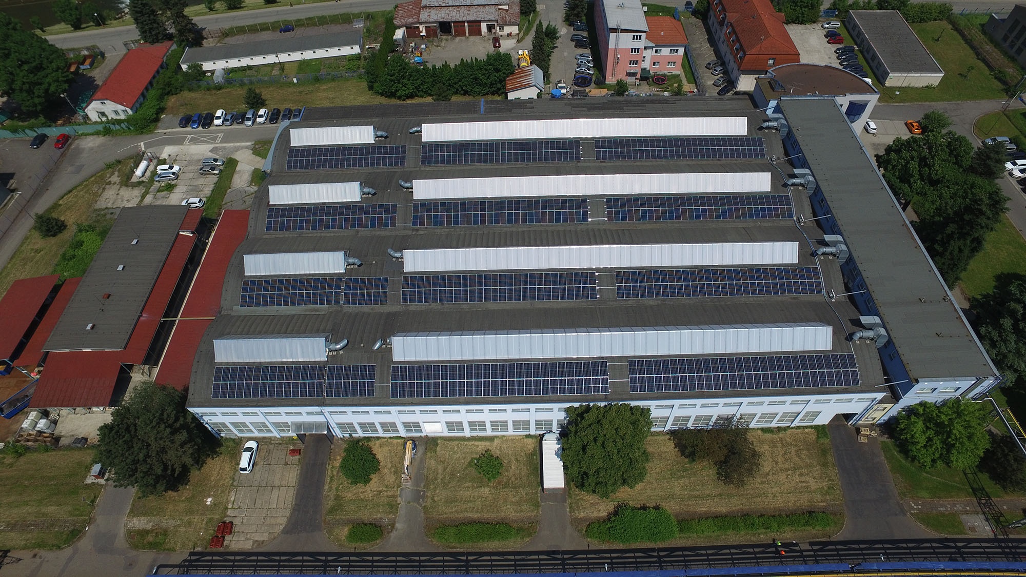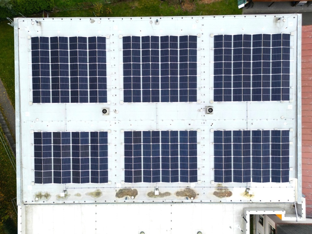 Na střeše základní školy v Hradci nad Moravicí jsme instalovali fotovoltaickou elektrárnu o výkonu 99,36 kWp. Na samonosnou hliníkovou konstrukci bylo: