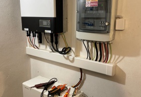 • Výkon FVE 5,46 kWp, baterie 7,68 kWh, střídač GROWATT SPH8000TL3, FV panely -12 ks Ja SOLAR 455 Wp, optimizéry TIGO, Growatt Groboost – přetoky do vody