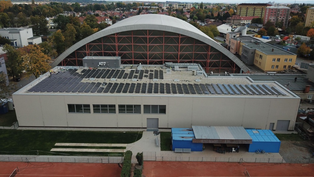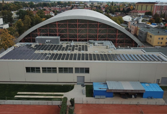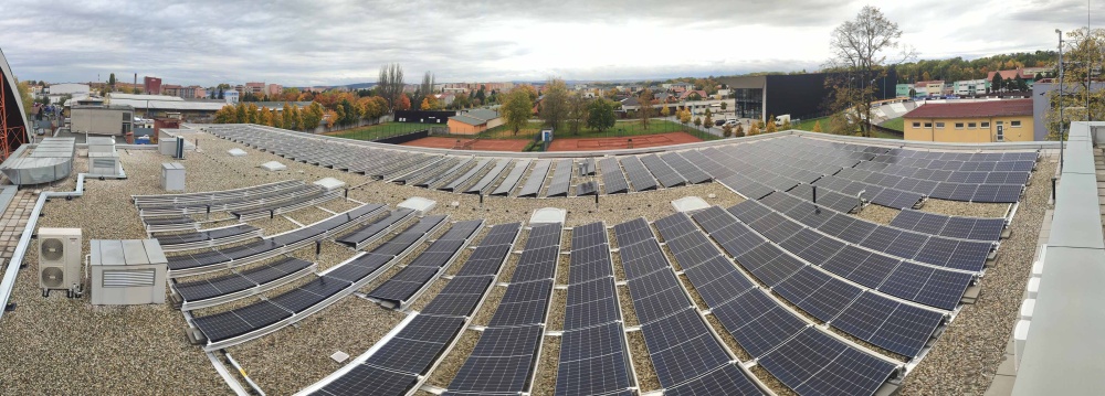 • Instalace fotovoltaického systému o celkovém instalovaném výkonu 131,1 kWp se skládá z 276 ks monokrystalických fotovoltaických panelů, každý o jmenovitém výkonu 475 Wp. FV panely jsou vybaveny výkonovými optimizéry typu SolarEdge S500. Jsou instalovány 2 ks třífázových střídačů se synergickou technologií SolarEdge SE66,6K.