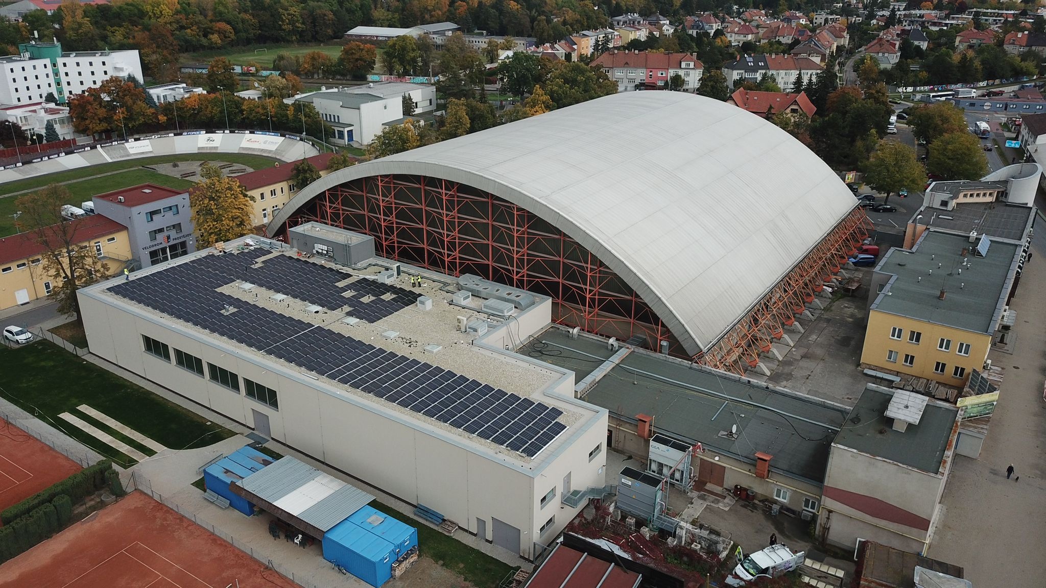 FVE 131,1 kWp, Prostějov FVE 500 kWp, baterie 1000 kWh, Hradec Králové FVE 544 kWp, Lipník