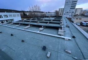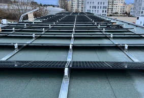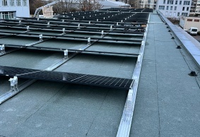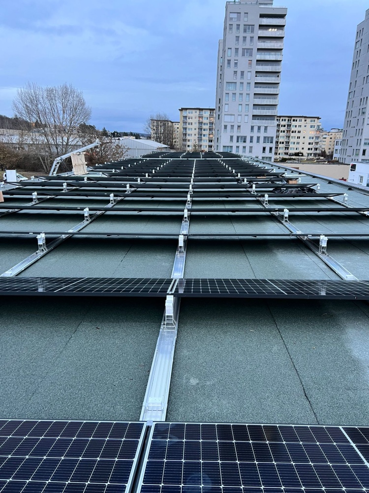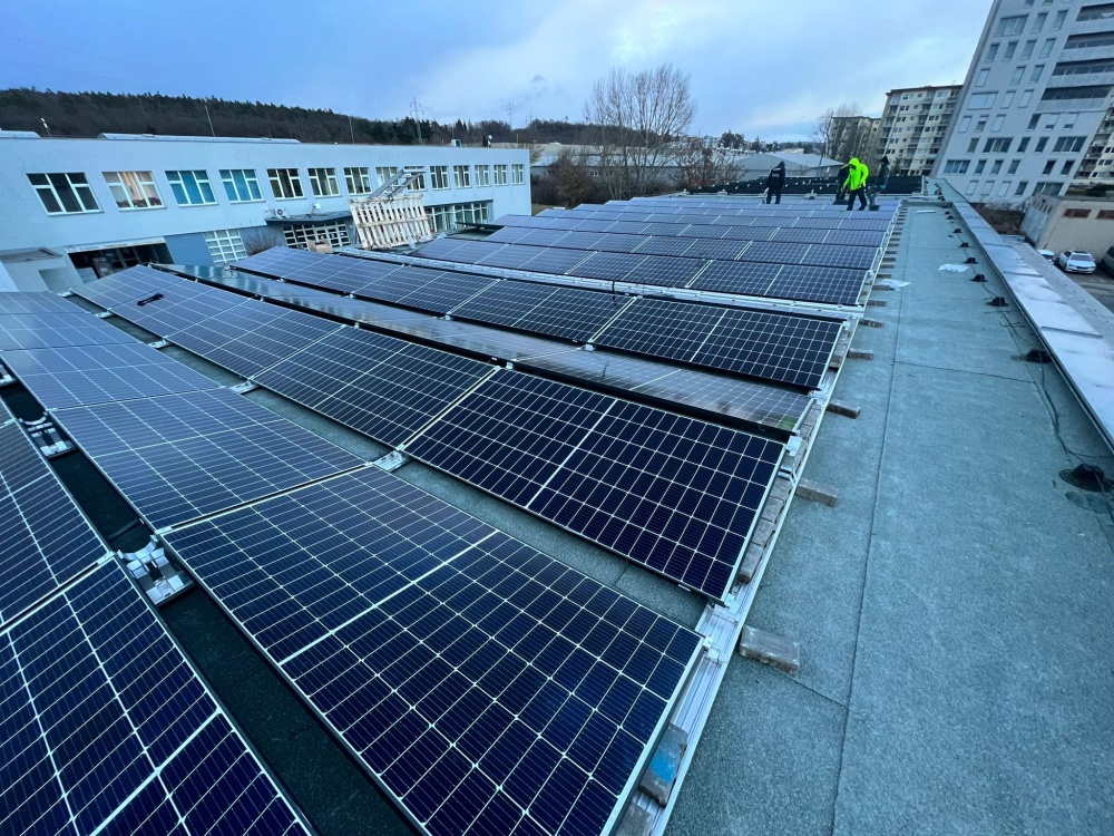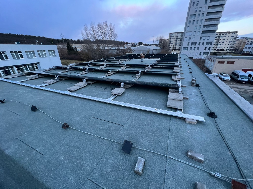 • Místo realizace FVE : Brno. Výkon 250 kWp, kapacita bateriového systému 216 kWh, celkový počet střech 2, celkový počet panelů AEG  455 Wp - 549 ks, měniče a optimizéry SolarEdge, kombinace konstrukcí  Novotegra samozátěž a přímá montáž  -  jih a V/Z. projekt vč. úpravy jimací hromosvodové soustavy, s úpravou technické místnosti (klimatizace, pomocná konstrukce a SDK, výmalba), a výstavbou technické buňky na měnič. Součástí projektu je rovněž stavební část - výkop, pokládka chrániček a kabeláže, zásyp, úprava povrchu komunikace.