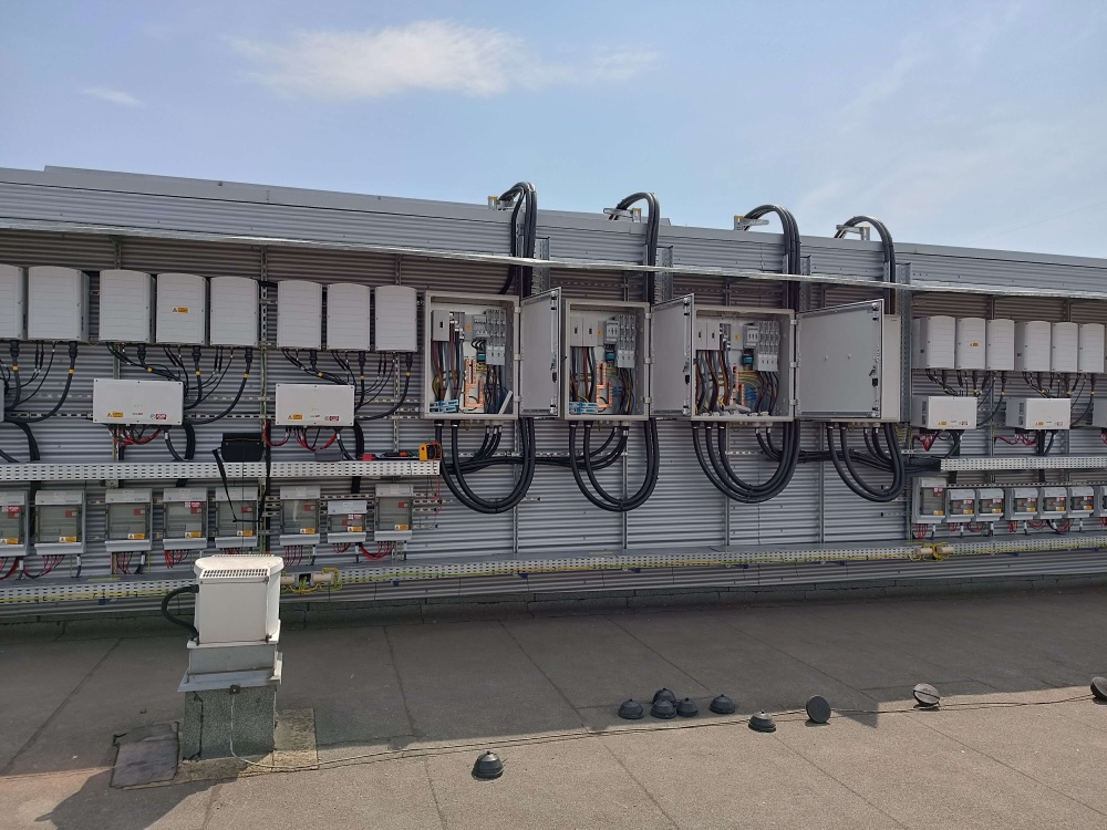 • Fotovoltaický systém je instalován na plochých střechách výrobních a skladovacích hal. Panely jsou umístěny na speciální samonosné konstrukci se zátěžovými betonovými prvky s orientací na jih. Bylo použito 13 ks střídačů zn. SOLAR EDGE o výkonu 100KW každý, a fotovoltaické panely o výkonu 450Wp v celkovém počtu 3736ks. Špičkový  výkon celého FV systému představuje 1681,2kWp a činí z něj jednu z největších střešních instalací v ČR.