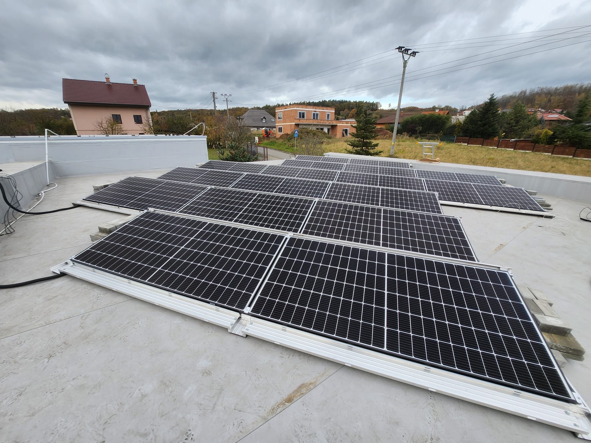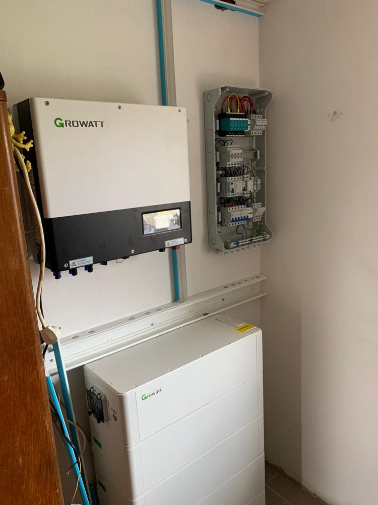 • Výkon FVE 8,19 kWp, baterie 10,24 kWh, střídač GROWATT SPH10000TL3, FV panely -18 ks Ja SOLAR 455 Wp, Growatt Groboost – přetoky do vody