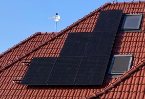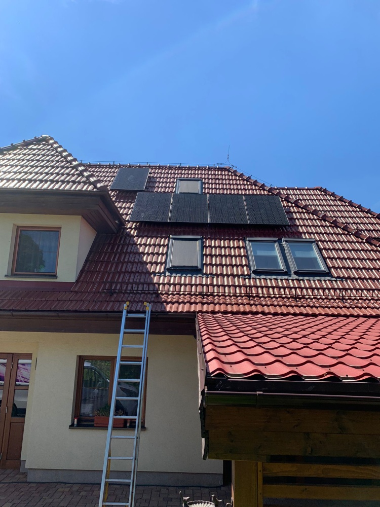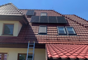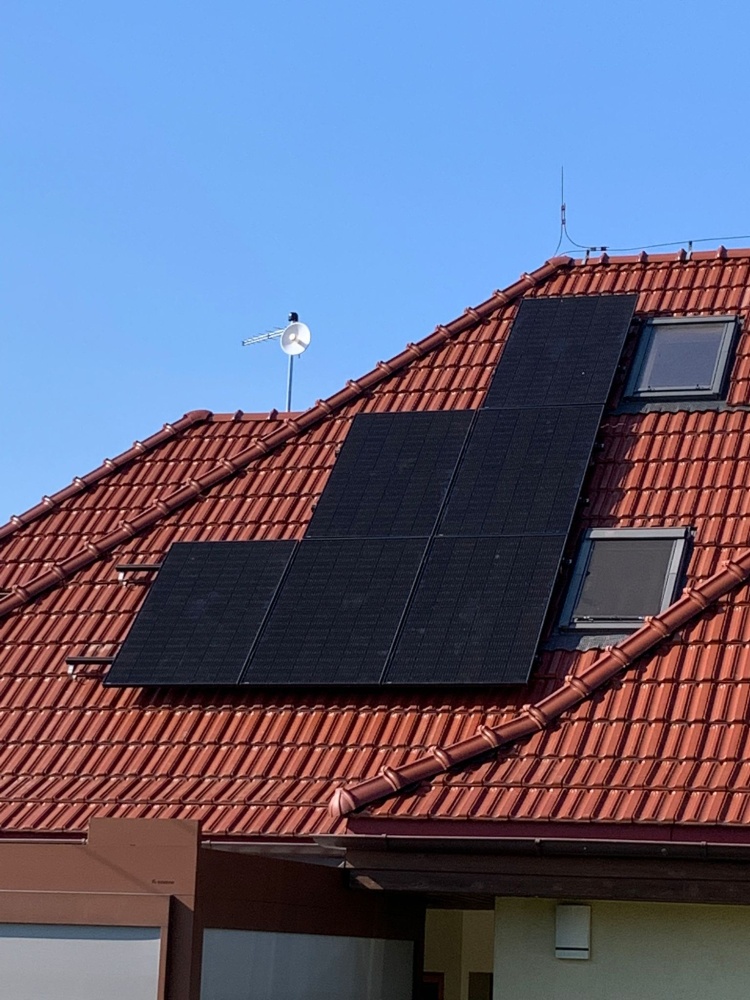 Členitá střecha s instalací na dva různé typy krytin s orientací na dvě světové strany (východ a Jih) celo černé provedení.