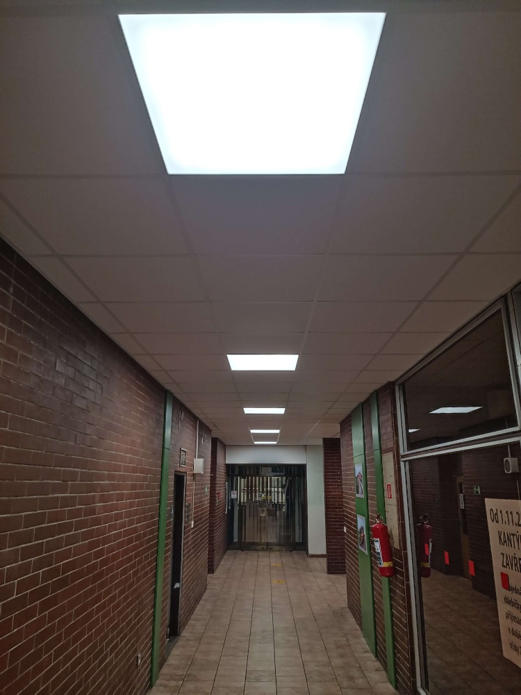 • Na zakladě výběrového řízení investora byla realizována výměna hlavního osvětlení I. až X. haly. Došlo k výměně starých výbojkových svítidel za nové moderní led osvětlení, doplněné také o nouzové led osvětlení.